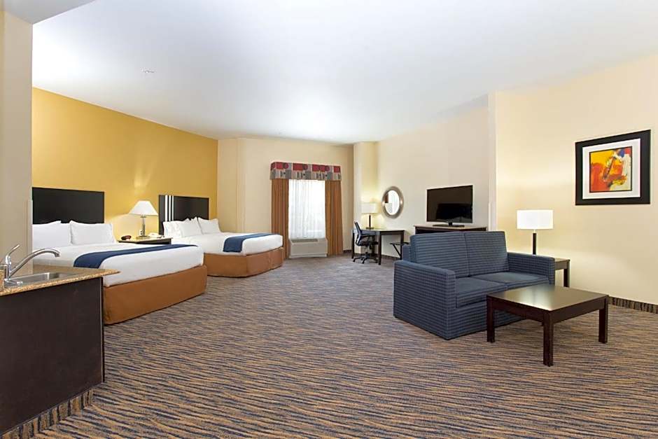 2 Queen Beds Suite Mobil Accessible Tub is 323 square feet and includes 2 queen-size beds 150-154 width and has a Disability-friendly bathroom.